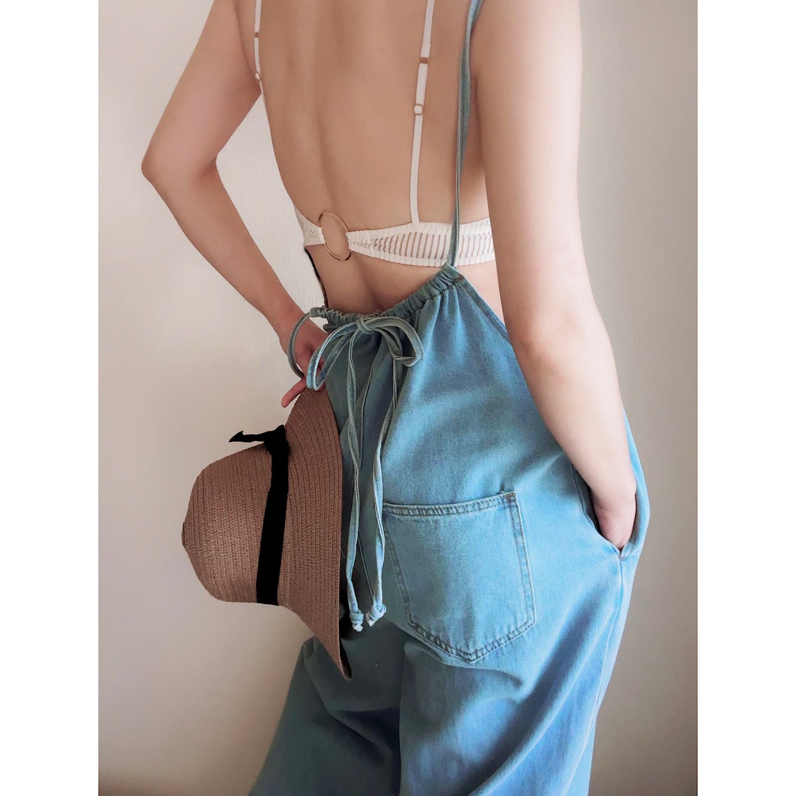 ・ストライプファブリックのカバーアップデザイン