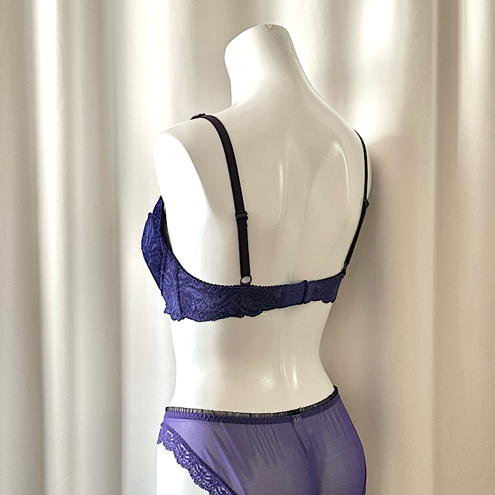 カップやや浅め・デコルテが広く開くハーフカップに近いデザインです。