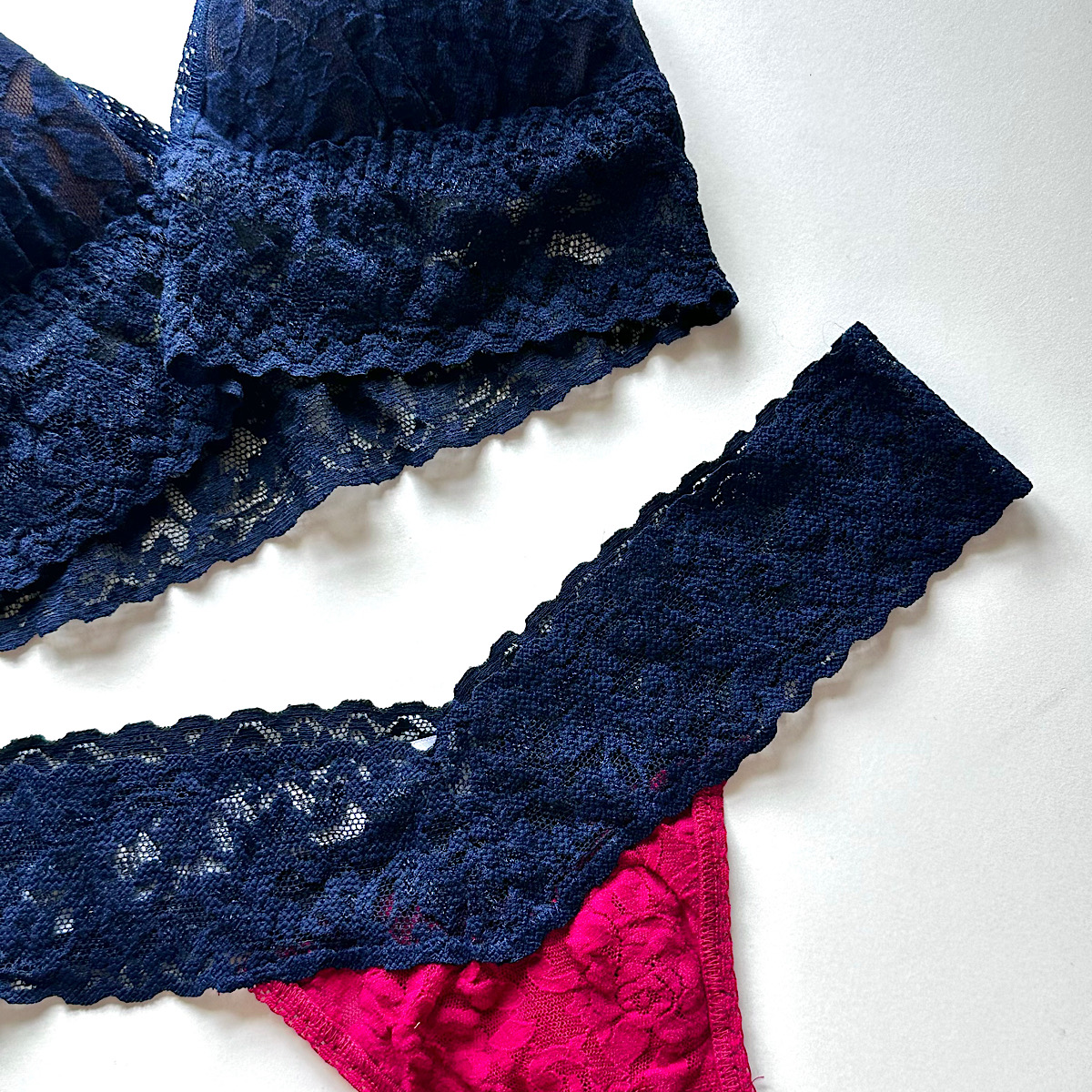 ハンキーパンキー定番、独自製法のシグネチャーレースを使用した製品は